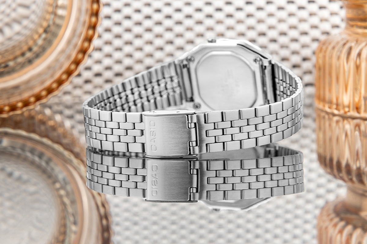 Wykonana z wysokiej jakości stali nierdzewnej, gwarantującej trwałość i wygodę noszenia przez cały dzień. Jej klasyczny wygląd idealnie współgra z klimatem vintage, a subtelne szczotkowane wykończenie nadaje zegarkowi ponadczasowy charakter. Logo Casio na sprzączce.