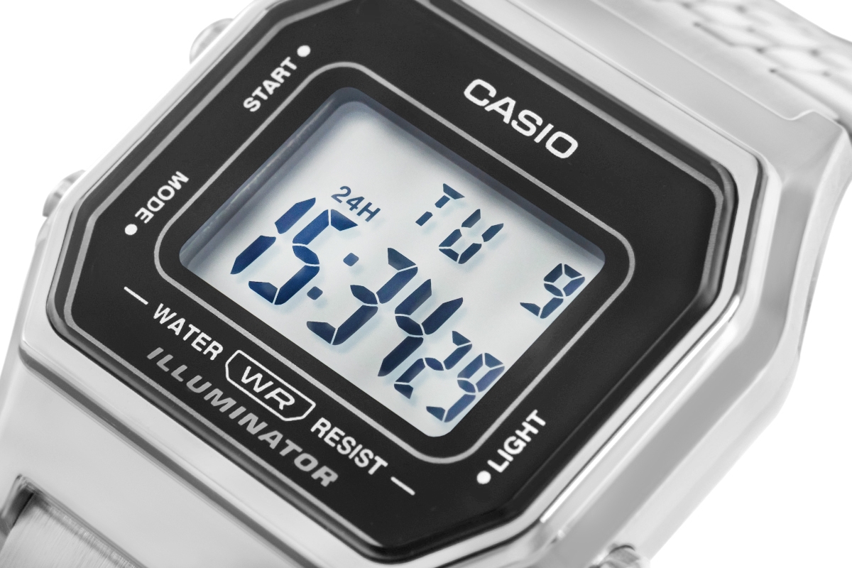 Casio LA680WA-1DF to jak vintage’owy akcent w nowoczesnej stylizacji – delikatny błysk srebra, który przenosi Cię w klimat lat 80., ale bez zbędnego patosu. Srebrna koperta o geometrycznych liniach i smukła, stalowa bransoleta tworzą duet idealny – minimalistyczny, a zarazem z charakterem. Zegarek jest lekki i zgrabny, dlatego świetnie odnajduje się w codziennym rytmie: poranne espresso, szybki spacer między spotkaniami, wieczorna chwila dla siebie.