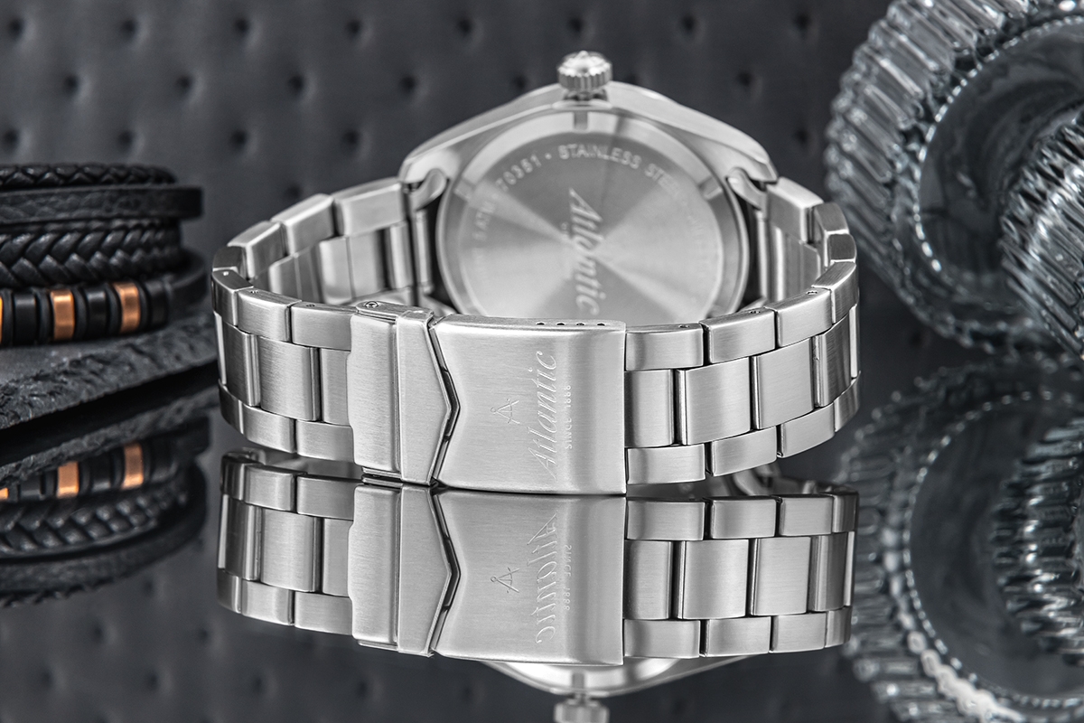 Bransoleta w zegarku Atlantic to perfekcyjne połączenie elegancji i trwałości – wykonana z wysokiej jakości stali szlachetnej, zachwyca subtelnym i ponadczasowym charakterem. Jej precyzyjne ogniwa zostały zaprojektowane tak, aby idealnie układały się na nadgarstku, zapewniając nie tylko estetykę, ale i pełen komfort noszenia przez cały dzień. Solidne zapięcie gwarantuje bezpieczeństwo i pewność w każdej sytuacji, a wyrafinowane wykończenie dodaje całości klasycznego szyku. To bransoleta, która nie tylko podkreśla prestiż zegarka, ale staje się wyrazistym elementem Twojego stylu – niezależnie od okazji.