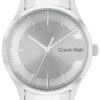 Z zegarkiem otrzymasz stylowe, firmowe pudełko w biało-czarnej kolorystyce z logo CALVIN KLEIN. To eleganckie opakowanie stanowi idealne uzupełnienie, które sprawia, że zegarek staje się gotowym, luksusowym prezentem. Cały zestaw podkreśla wyjątkowy charakter i klasę marki CALVIN KLEIN.