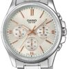 CASIO MTP-1375D-7A2VDF to zegarek dla mężczyzny, który lubi mieć wszystko pod kontrolą – styl, czas i jakość. Klasyczna stalowa konstrukcja z powłoką jonową gwarantuje trwałość i odporność na codzienne wyzwania, a tarcza z eleganckimi srebrnymi akcentami dodaje charakteru każdej stylizacji – od garnituru po jeansy. Subtarcze pokazujące dzień tygodnia, datę i godzinę w trybie 24h dają Ci pełen obraz sytuacji za jednym spojrzeniem, bez sięgania po telefon. Wodoszczelność do 50 metrów i dokładność mechanizmu (±20 sekund/miesiąc) to spokój ducha – nie musisz się martwić o pogodę, przypadkowe zachlapania czy spóźnienia. Całość tworzy wyrazisty, męski styl, który przyciąga spojrzenia i sprawia, że zegarek prezentuje się znacznie powyżej swojej klasy cenowej.
