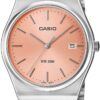 Zanurz się w klimacie lat 80. – dzięki retro wyglądowi i niepowtarzalnej kolorystyce. Ten model męskiego zegarka CASIO posiada tarczę w kolorze zgaszonego, brzoskwiniowego różu, który w świetle zyskuje subtelny, metaliczny połysk. Choć odcień jest nietypowy, całość utrzymana jest w nowoczesnym, minimalistycznym stylu, który nie traci męskiego charakteru. Zegarek oferuje nie tylko styl, ale też funkcjonalność: wodoodporność do 50 metrów oraz praktyczny datownik sprawiają, że doskonale sprawdza się w codziennym użytkowaniu. To połączenie nowoczesnej energii z ponadczasową formą.