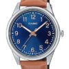 Wyróżnij się stylem zarówno w pracy, jak i podczas czasu wolnego dzięki linii eleganckich zegarków Casio MTP-V005. To Klasyczny zegarek analogowy CASIO zaprojektowany w oparciu o ponadczasowy wygląd wskazówek godzinowej, minutowej i sekundowej. Prosty, czytelny design tarczy sprawia, że łatwo jest być punktualnym. Zegarek wyróżnia się elegancką granatową tarczą, która nadaje mu stylowy wygląd. Jasne indeksy i delikatne wskazówki wyraźnie odcinają się na ciemnym tle, zapewniając doskonałą czytelność. Uzupełnieniem jest klasyczny brązowy pasek o skórzanej fakturze, dodający całości wyrafinowanego charakteru. Prosty design, wskazówki z fluorescencją i odporność na zachlapania sprawiają, że to idealny wybór na co dzień.