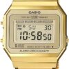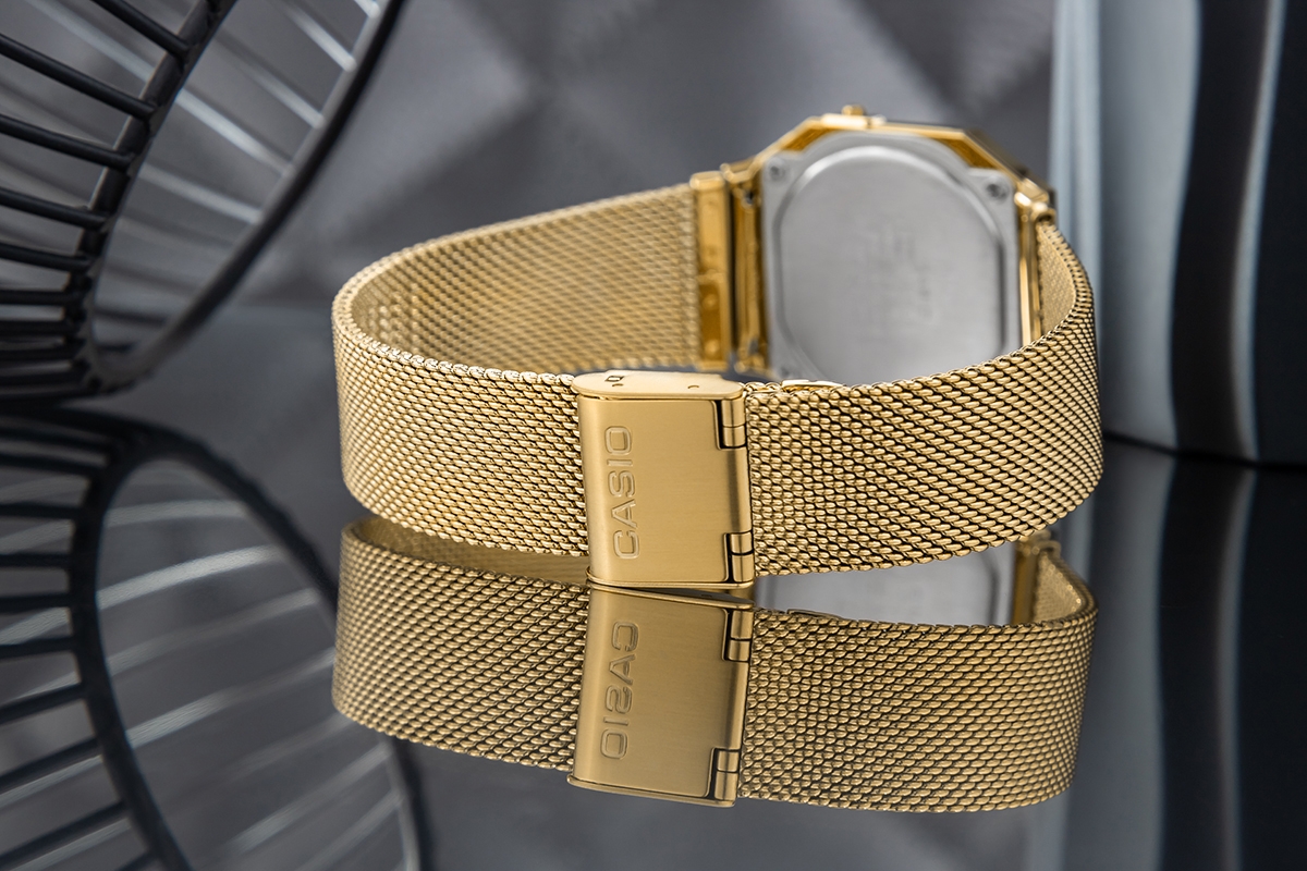 CASIO A700WMG to model to ukłon w stronę estetyki retro, zamknięty w smukłej, nowoczesnej formie. Zaledwie 6 mm grubości sprawia, że zegarek wygląda subtelnie i nosi się jak delikatna bransoletka – niezauważalny na co dzień, ale trudny do przeoczenia. Złota koperta i dopasowana stalowa bransoleta dodają mu klasy, a cyfrowy wyświetlacz dba o funkcjonalność – pokazuje godzinę, datę, dzień tygodnia i porę dnia. Gdy dzień nabiera tempa, możesz liczyć na precyzyjny stoper, codzienny alarm i odporność na zachlapania – wszystko, czego potrzebujesz w codziennej bieganinie. A wieczorem? Podświetlenie LED w ciepłym, bursztynowym odcieniu podkreśla klimat vintage i ułatwia odczyt godziny, nawet przy zgaszonym świetle. To zegarek, który pasuje do każdej chwili – elegancki, funkcjonalny i zawsze na czasie.
